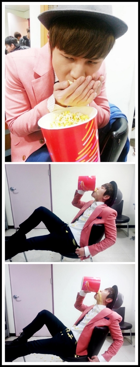 가수 케이윌이 팝콘을 먹고 있는 사진으로 신곡 '러브블러썸'을 홍보했다.