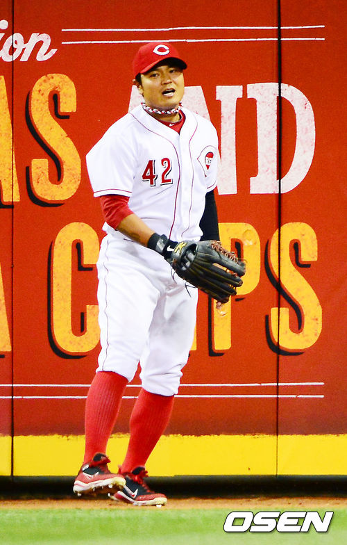 8회초 2사 주자 2루 필라델피아 어틀리의 중월 투런 홈런 타구를 신시내티 중견수 추신수가 잡아내려했지만 실패한 후 아쉬워하고 있다. / rumi@osen.co.kr