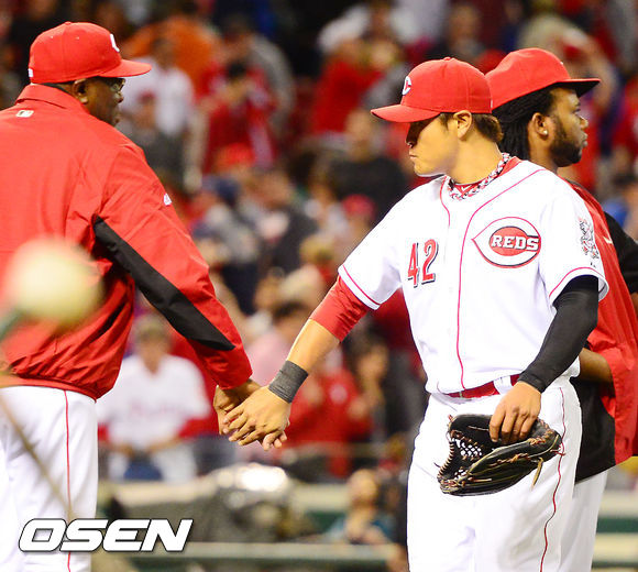 신시내티는 16일(이하 한국시간) 미국 오하이오주 신시내티 그레이트아메리칸볼파크에서 열린 '2013 메이저리그' 필라델피아 필리스와 홈경기에서 선발 브론슨 아로요의 호투와 8회말 터진 브랜든 필립스의 결승타에 힘입어 4-2로 승리했다. 최근 5연패 사슬을 끊으며 6승7패. 필라델피아도 6승7패가 됐다.