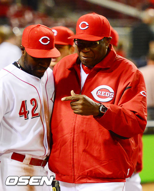 경기를 마치고 신시내티 더스티 베이커 감독이 기쁨을 나누고 있다. / rumi@osen.co.kr