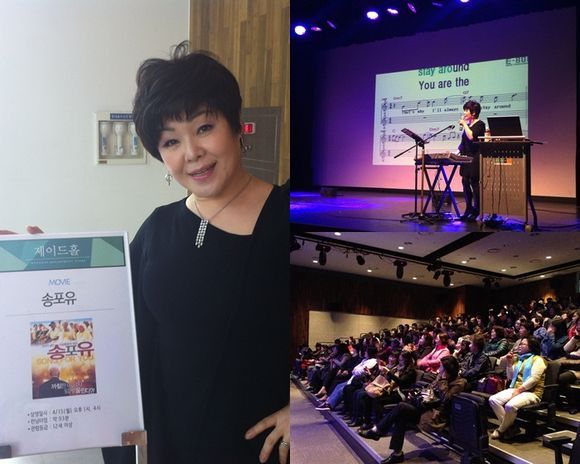‘송 포 유’는 지난 15일 서울 현대백화점 문화홀에서 노래교실을 곁들인 이색 시사회를 성황리에 개최했다. 이날 행사에는 정성을 강사가 300여명의 주부 관객들과 함께 영화 속에 등장한 노래를 배우는 시간을 가졌다.