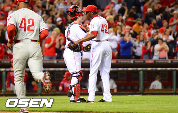 경기를 마치고 신시내티 아롤디스 채프먼이 기뻐하고 있다. / rumi@osen.co.kr