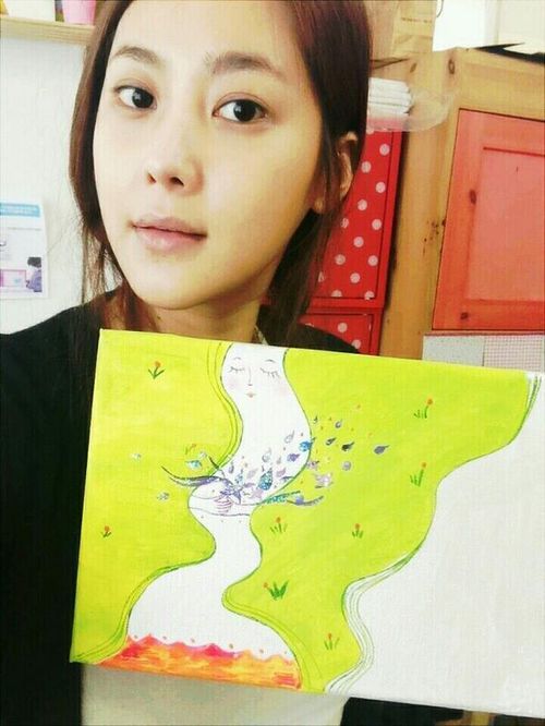 가수 솔비가 직접 그린 그림과 함께 청순미가 돋보이는 인증샷을 찍었다.