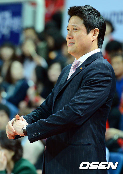16일 오후 울산동천체육관에서 열린 '2012-2013 KB국민카드 프로농구 챔피언결정 3차전 울산 모비스와 서울 SK의 경기, 경기에 앞서 SK문경은 감독이 선수들을 바라보고 있다.