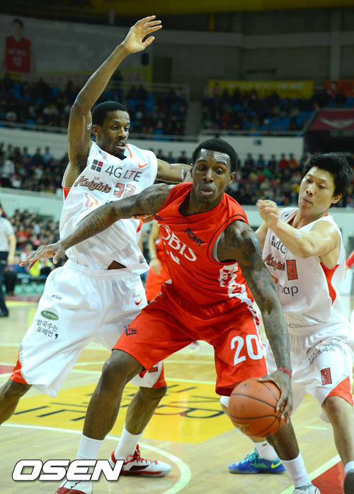 16일 오후 울산동천체육관에서 열린 '2012-2013 KB국민카드 프로농구 챔피언결정 3차전 울산 모비스와 서울 SK의 경기, 1쿼터 모비스 라틀리프가 수비를 피해 골밑 돌파를 시도하고 있다.