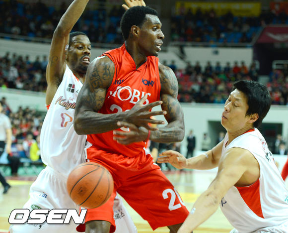 16일 오후 울산동천체육관에서 열린 '2012-2013 KB국민카드 프로농구 챔피언결정 3차전 울산 모비스와 서울 SK의 경기, 1쿼터 모비스 라틀리프가 SK 박상오 수비에 공을 놓치고 있다.