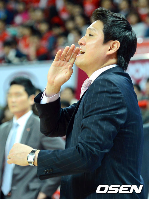 16일 오후 울산동천체육관에서 열린 '2012-2013 KB국민카드 프로농구 챔피언결정 3차전 울산 모비스와 서울 SK의 경기, 2쿼터 SK문경은 감독이 선수들에게 작전을 지시하고 있다.