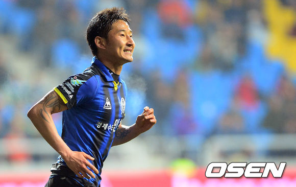 16일 오후 인천 축구전용경기장에서 열린 '현대오일뱅크 K리그 클래식' 인천 유나이티드와 전남 드래곤즈의 경기 전반 이천수가 슈팅 기회를 놓친 후 아쉬워하고 있다.