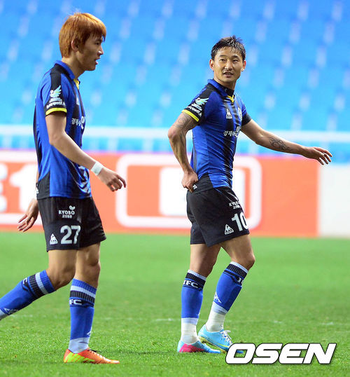 16일 오후 인천 축구전용경기장에서 열린 '현대오일뱅크 K리그 클래식' 인천 유나이티드와 전남 드래곤즈의 경기 전반을 마친 이천수가 락커룸으로 향하고 있다.