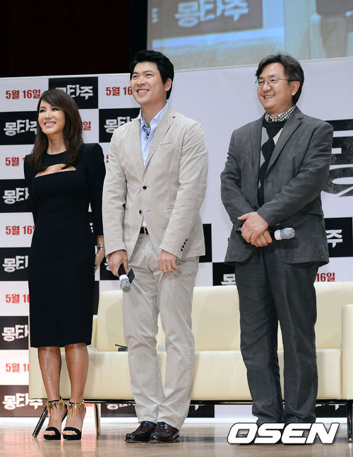 16일 오후 서울 광진구 건국대 새천년 기념관에서 진행된 영화 '몽타주' 특별 쇼케이스에서 엄정화, 김상경, 송영창이 인사를 하고 있다.