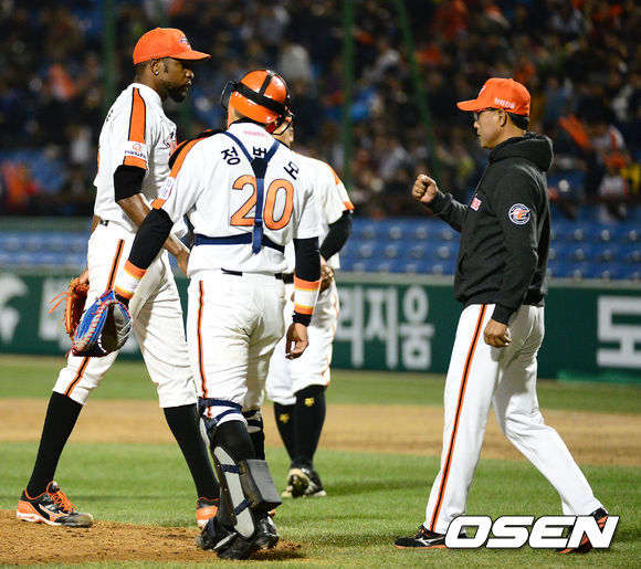 16일 오후 대전 한밭종합운동장 야구장에서 열린 2013 한국야쿠르트 세븐프로야구 한화 이글스와 NC 다이노스의 경기, 6회초 2사에서 한화 선발 투수 바티스타가 마운드를 내려가고 있다.