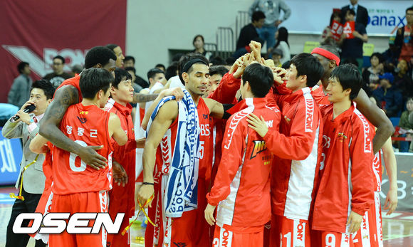 경기후 모비스 선수들이 승리를 기뻐하고 있다. /ouxou@osen.co.kr
