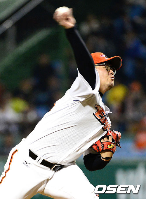 16일 오후 대전 한밭종합운동장 야구장에서 열린 2013 한국야쿠르트 세븐프로야구 한화 이글스와 NC 다이노스의 경기, 7회초 한화 송창식이 힘차게 공을 던지고 있다.