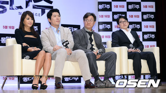 16일 오후 서울 광진구 건국대 새천년 기념관에서 진행된 영화 '몽타주' 특별 쇼케이스에서 엄정화, 김상경, 송영창, 정근섭 감독이 취재진의 질문을 듣고 있다.
