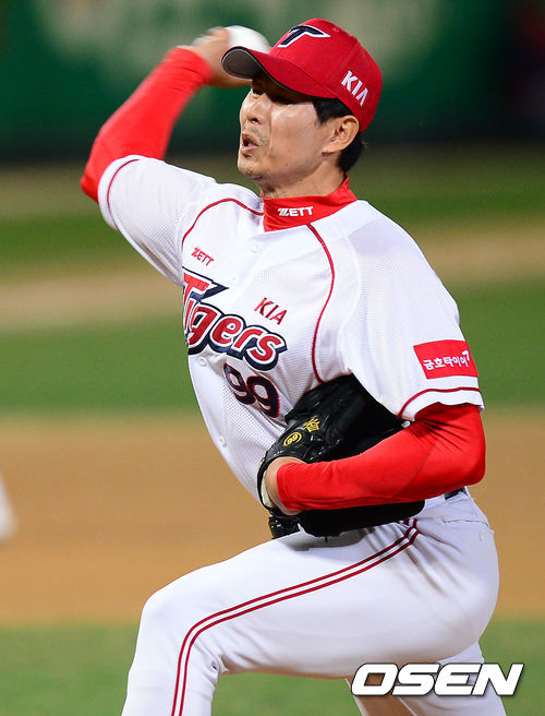16일 오후 광주구장에서 '2013 한국야쿠르트 세븐 프로야구' KIA 타이거즈 대 LG 트윈스의 경기가 열렸다. 7회초 KIA 투수 최향남이 힘차게 공을 던지고 있다.