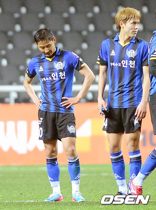 16일 오후 인천 축구전용경기장에서 열린 '현대오일뱅크 K리그 클래식' 인천 유나이티드와 전남 드래곤즈의 경기 종료 후 이천수가 고개를 떨구고 있다.