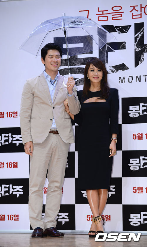 16일 오후 서울 광진구 건국대 새천년 기념관에서 진행된 영화 '몽타주' 특별 쇼케이스에서 김상경, 엄정화가 포토타임을 갖고 있다.