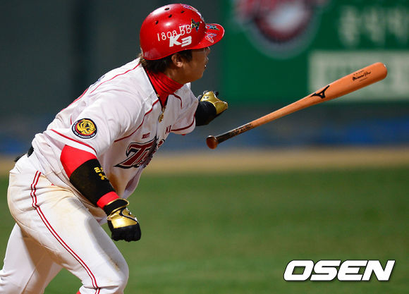 16일 오후 광주구장에서 '2013 한국야쿠르트 세븐 프로야구' KIA 타이거즈 대 LG 트윈스의 경기가 열렸다. 7회말 KIA 공격 1사 2, 3루 상황 4번 나지완이 좌익수를 넘기는 2루타를 날리고 있다.