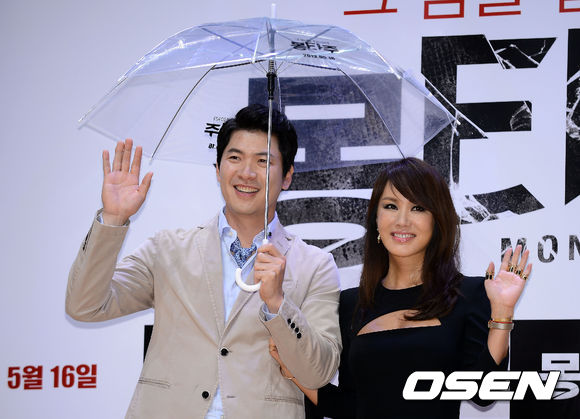 16일 오후 서울 광진구 건국대 새천년 기념관에서 진행된 영화 '몽타주' 특별 쇼케이스에서 김상경, 엄정화가 포토타임을 갖고 있다.