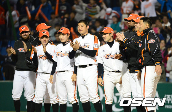 경기 종료 후 한화 선수들이 승리의 기쁨을 나누고 있다. /sunday@osen.co.kr