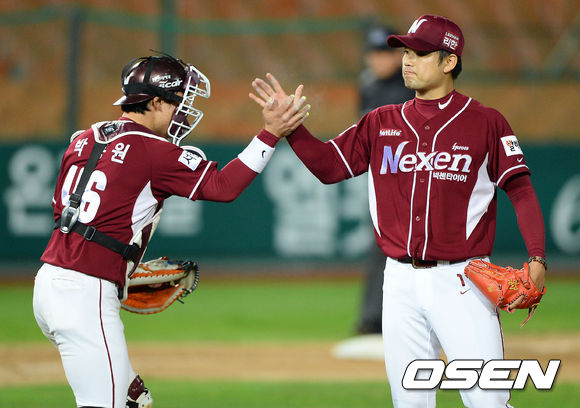 경기종료 후 승리를 거둔 넥센 손승락 마무리 투수와 박동원 포수가 하이파이브를 하고 있다. / soul1014@osen.co.kr