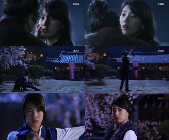 앞서 소정법사로(김희원 분)로부터 “초승달이 달린 도화나무 아래서 만난 인연을 피하라”는 말을 들었던 담여울은 최강치가 그 인연임을 알고 혼란스러움을 느끼게 된다. 결국 그 복잡한 마음을 스스로 달래기 위해 벚꽃이 휘날리는 달빛 아래 검술 연습을 하게 됐다. 이 장면에서 마치 춤을 추듯 아름다운 모습을 연출하는 수지의 모습은 한 폭의 그림과도 같았다.