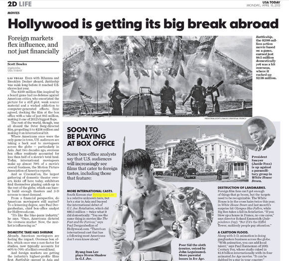 이 기사에서는 현재 많은 할리우드 영화들이 미국 뿐 아니라 해외시장을 중시하고 있고, 그로 인해 많은 해외 배우들이 관객의 시선을 집중시키고 있음을 주목했다. 할리우드에 큰 영향을 미친 외국 배우로 이병헌을 예로 든 것이 눈길을 끈다.