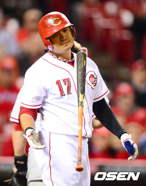 8회말 2사 주자 없는 상황에서 타석에서 삼진을 당한 신시내티 추신수가 배트를 던지며 아쉬워하고 있다. / rumi@osen.co.kr
