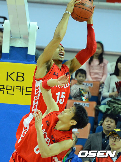 17일 오후 울산 동천체육관에서 열린 '2012-2013 KB국민카드 프로농구 챔피언결정 4차전 울산 모비스와 서울 SK의 경기, 1쿼터 모비스 문태영이 리바운드를 하고 있다.