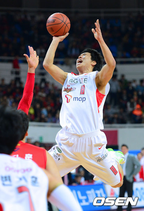 17일 오후 울산 동천체육관에서 열린 '2012-2013 KB국민카드 프로농구 챔피언결정 4차전 울산 모비스와 서울 SK의 경기, 1쿼터 SK 박상오가 슛을 시도하고 있다