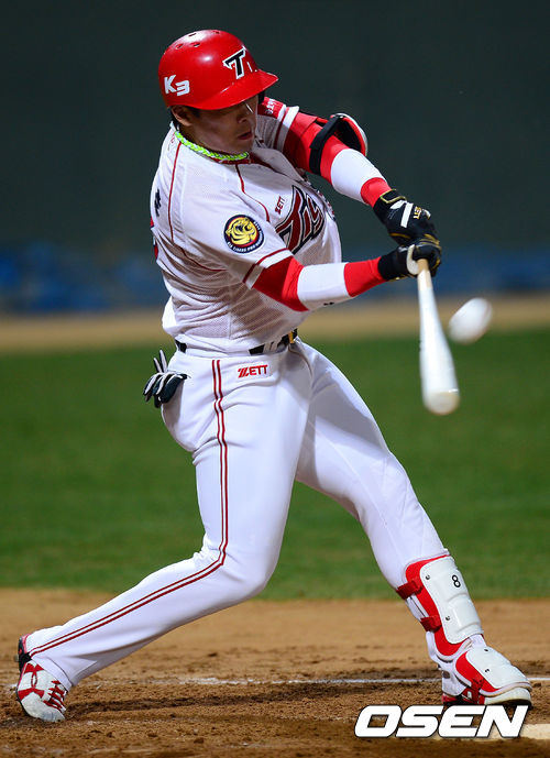 17일 오후 광주구장에서 '2013 한국야쿠르트 세븐 프로야구' KIA 타이거즈 대 LG 트윈스의 경기가 열렸다. 2회말 KIA 공격 1사 3루 상황 7번 안치홍이 우익수 희생플라이를 날리고 있다.