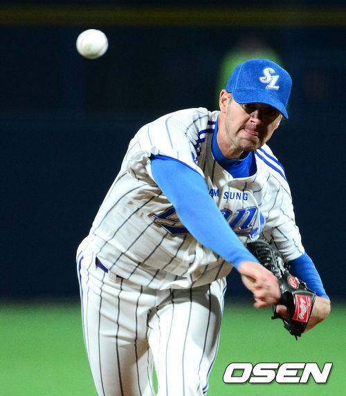 17일 오후 포항야구장에서 열린 2013 한국야쿠르트 세븐프로야구 삼성 라이온즈와 SK 와이번스의 경기, 1회초 삼성 선발 투수 밴덴헐크가 힘차게 공을 던지고 있다.
