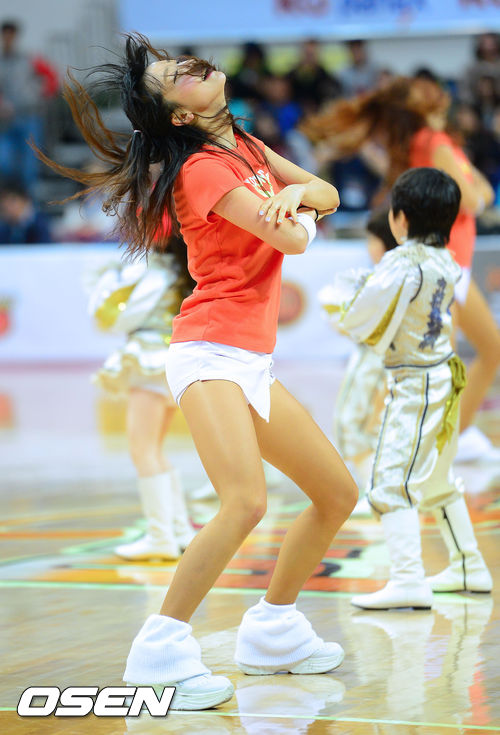 17일 오후 울산 동천체육관에서 열린 '2012-2013 KB국민카드 프로농구 챔피언결정 4차전 울산 모비스와 서울 SK의 경기, 1쿼터 종료 후 모비스 치어리더가 멋진 공연을 펼치고 있다