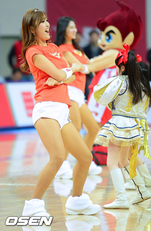 17일 오후 울산 동천체육관에서 열린 '2012-2013 KB국민카드 프로농구 챔피언결정 4차전 울산 모비스와 서울 SK의 경기, 1쿼터 종료 후 모비스 치어리더가 멋진 공연을 펼치고 있다