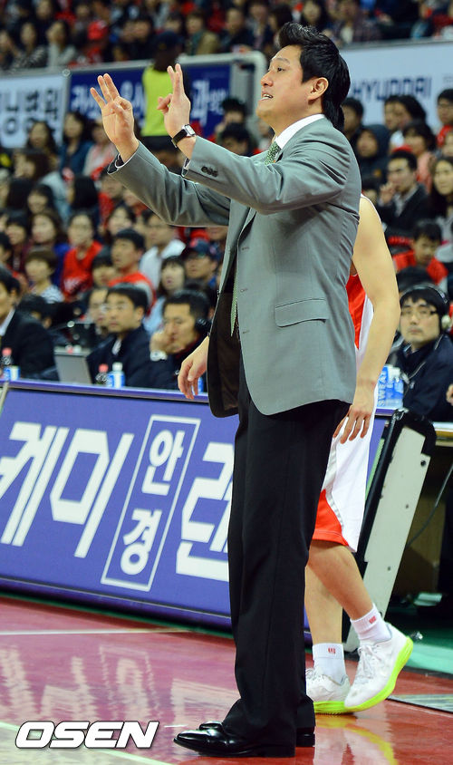 17일 오후 울산 동천체육관에서 열린 '2012-2013 KB국민카드 프로농구 챔피언결정 4차전 울산 모비스와 서울 SK의 경기, 2쿼터 SK 문경은 감독이 작전을 지시하고 있다.