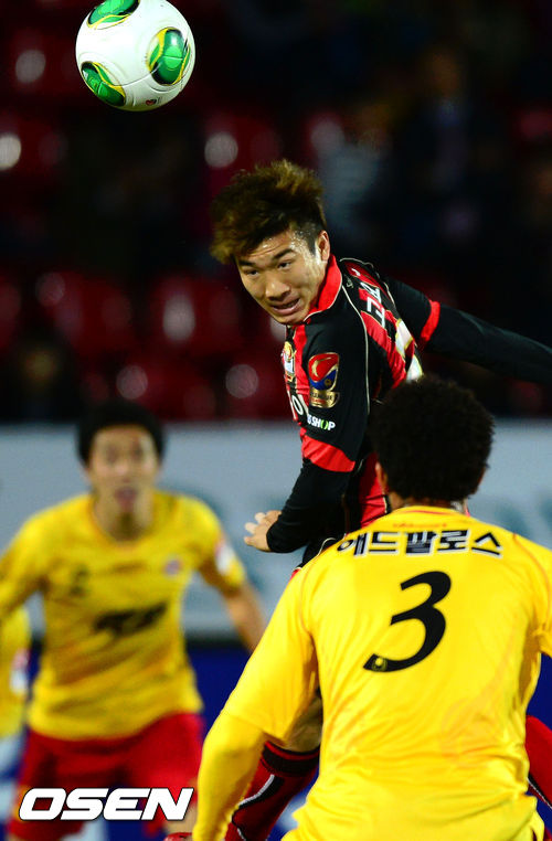 17일 오후 성남 탄천종합운동장에서 열린 '현대오일뱅크 K리그 클래식' 성남 일화와 FC 서울의 경기 전반 서울 고요한이 헤딩슛을 시도하고 있다.