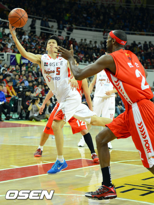 17일 오후 울산 동천체육관에서 열린 '2012-2013 KB국민카드 프로농구 챔피언결정 4차전 울산 모비스와 서울 SK의 경기, 4쿼터 SK 김선형이 골밑슛을 시도하고 있다.