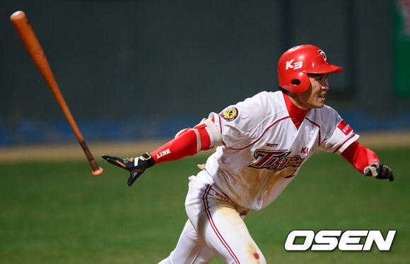 17일 오후 광주구장에서 '2013 한국야쿠르트 세븐 프로야구' KIA 타이거즈 대 LG 트윈스의 경기가 열렸다. 6회말 KIA 공격 2사 주자 없는 상황 2번 신종길이 안타를 날리고 있다.