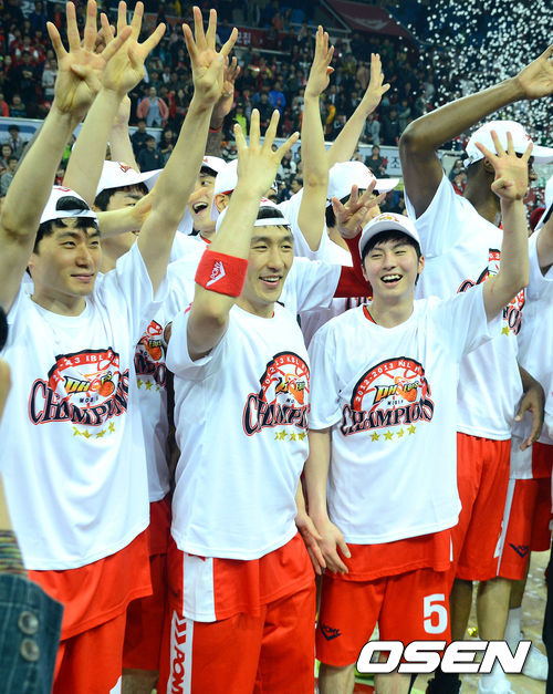 경기후 우승한 모비스 선수들이 기뻐하고 있다. /ouxou@osen.co.kr