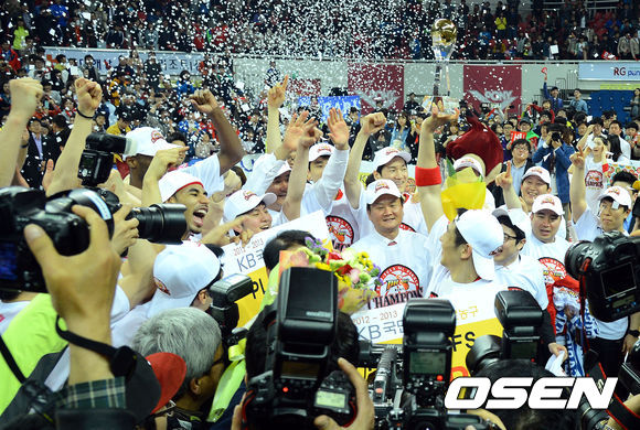 경기후 우승한 모비스 선수들이 기뻐하고 있다. /ouxou@osen.co.kr