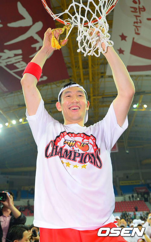 우승 후 모비스 양동근이 림 줄을 자르고 있다. /soul1014@osen.co.kr