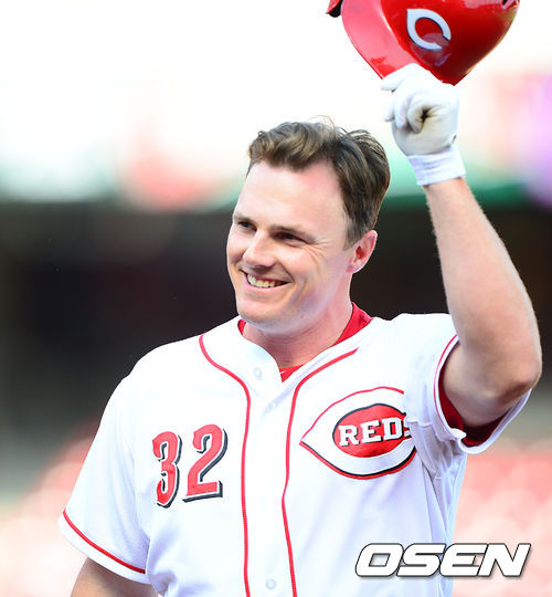 9회말 무사 주자 만루 신시내티 제이 브루스가 끝내기 안타를 날린 후 미소지으며 인사를 하고 있다. / rumi@osen.co.kr
