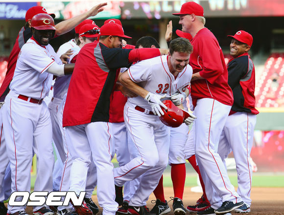 9회말 무사 주자 만루 신시내티 제이 브루스가 끝내기 세레머니를 당하고 있다. / rumi@osen.co.kr