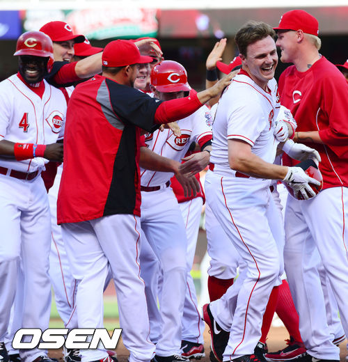 9회말 무사 주자 만루 신시내티 제이 브루스가 끝내기 세레머니를 당하고 있다. / rumi@osen.co.kr