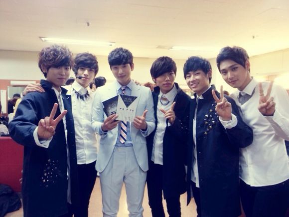 퓨어는 18일 공식 트위터를 통해 한 음악방송 대기실에서 2AM 멤버 정진운과 함께한 인증샷을 공개했다.