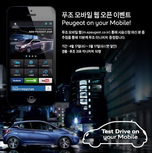 한편 이번 서비스 출시를 기념해 한불모터스는 5월 17일까지 한 달간 모바일웹을 통해 시승신청을 한 운전자들 중 추첨을 통해 50명에게 푸조 미니어처를 증정하는 이벤트도 진행한다.
