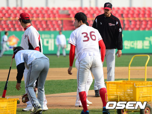 18일 오후 광주구장에서 열리는 '2013 한국야쿠르트 세븐 프로야구' KIA 타이거즈 대 LG 트윈스의 경기를 앞두고 선발로 예정된 주키치가 마운드를 살피고 있다.
