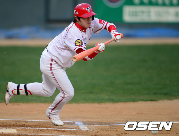 18일 오후 광주구장에서 '2013 한국야쿠르트 세븐 프로야구' KIA 타이거즈 대 LG 트윈스의 경기가 열렸다. 1회말 KIA 공격 무사 1루 상황 2번 김선빈이 번트를 시도하고 있다..