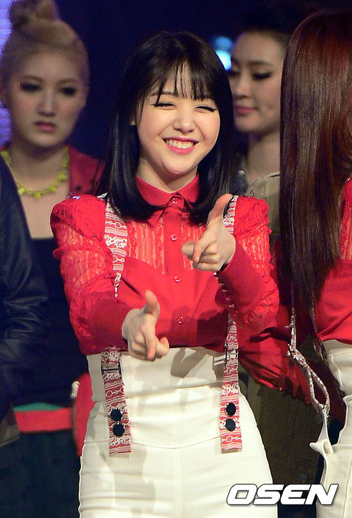 18일 오후 서울 상암동 CJ E&M에서 진행된 Mnet '엠카운트다운'(이하 엠카) 생방송에서 걸스데이 민아가 팬들과 장난을 치고 있다.