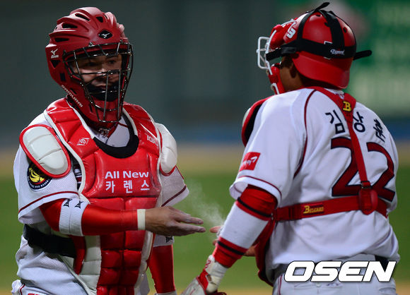 18일 오후 광주구장에서 '2013 한국야쿠르트 세븐 프로야구' KIA 타이거즈 대 LG 트윈스의 경기가 열렸다. 3회초 LG 공격 2사 2, 3루 상황 KIA 포수 차일목이 김상훈과 교체되고 있다.